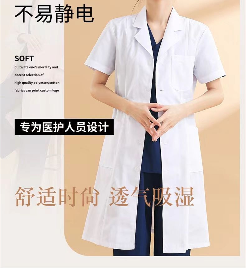 医护护士服娃娃领白大褂短袖款夏季
