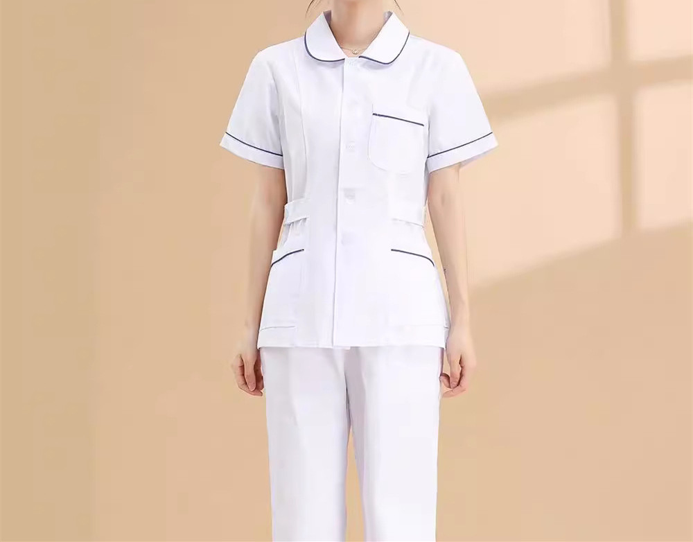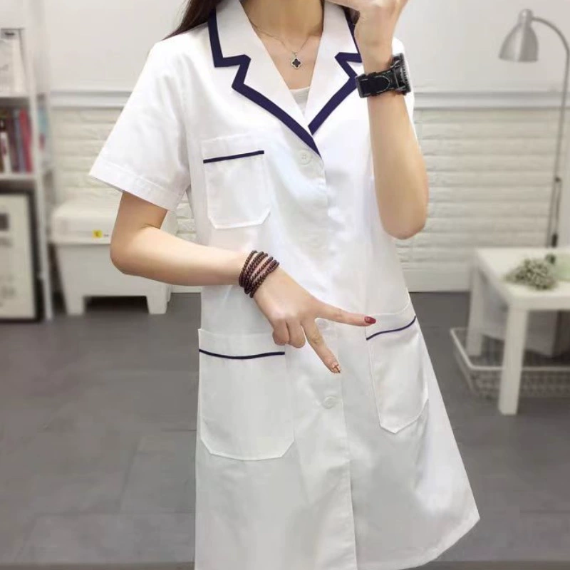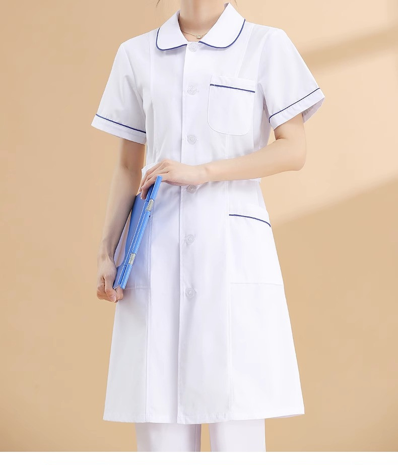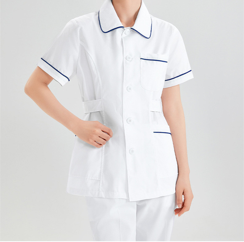 加蓝边护士服大褂短袖修身药店牙科工作服