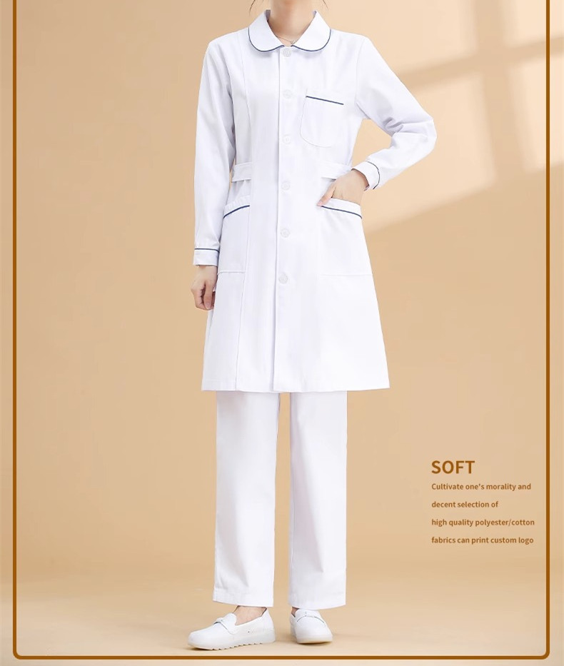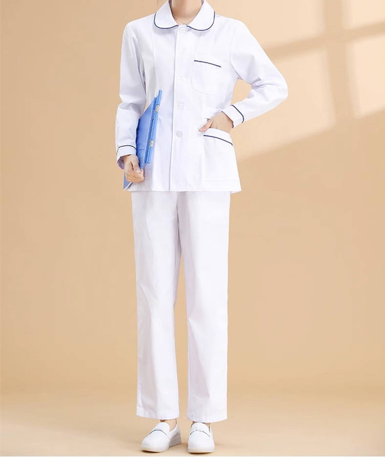 护士服女款长袖白大褂长袖娃娃领药店美容院工作服套装
