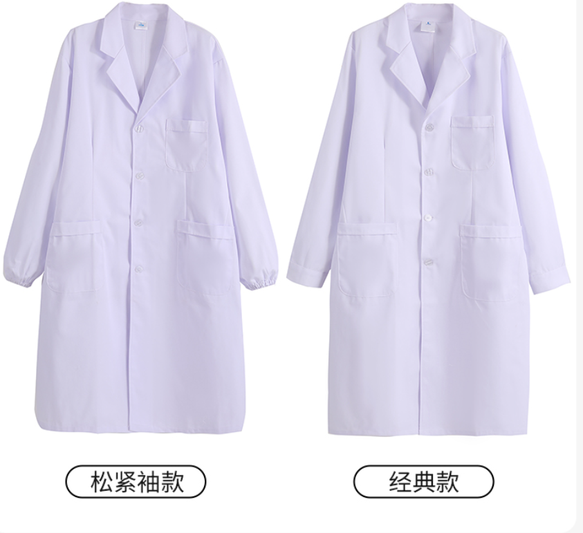 医院服白大褂实验服锁边款松紧袖长袖工作服药店白大褂美容院大褂