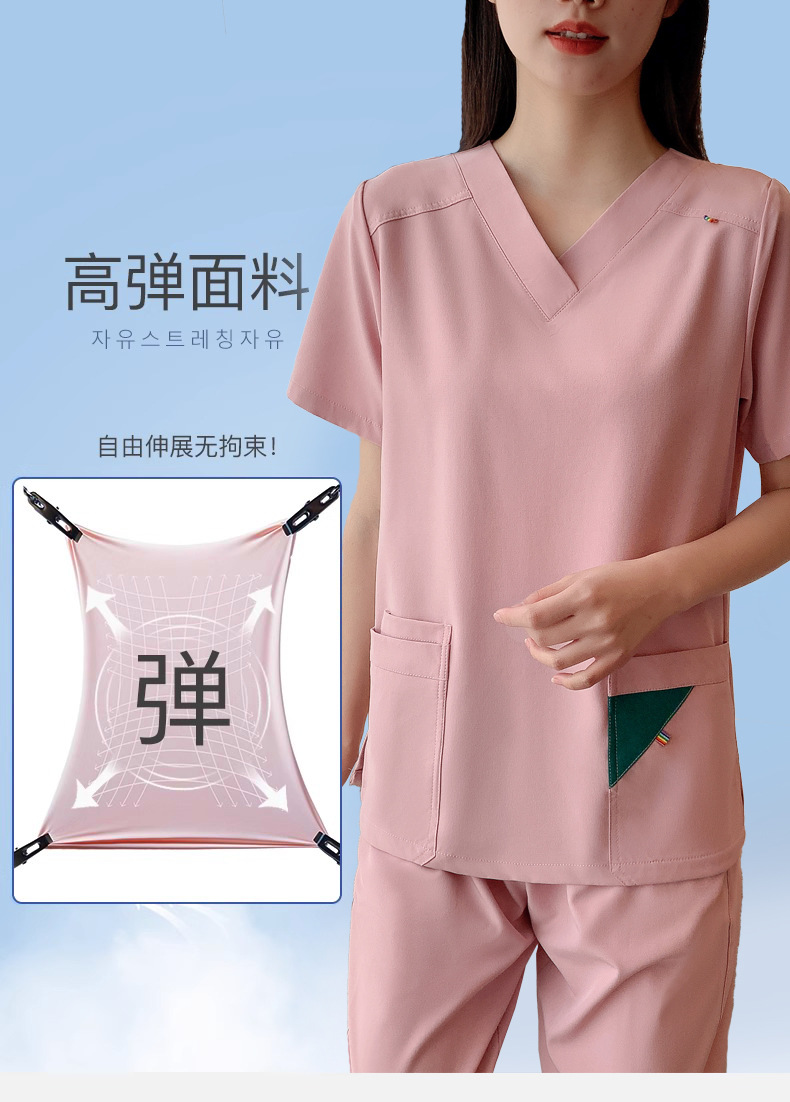 弹力手术室洗手衣女宠物医生工作服口腔牙科刷手服美容院夏季短袖
