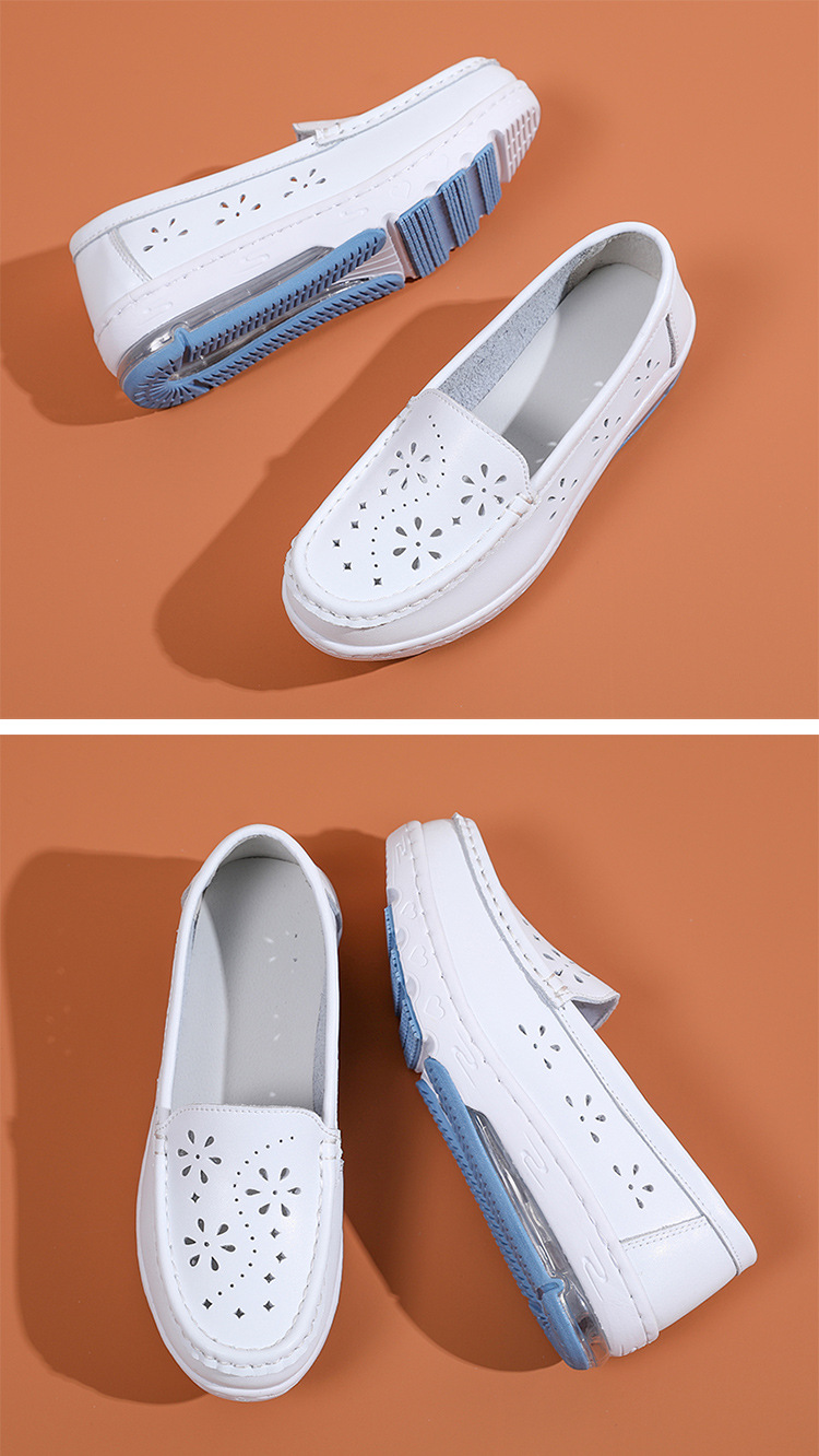 四季不累脚护士鞋女舒适软底防滑透气镂空真皮防臭平底工作医护鞋