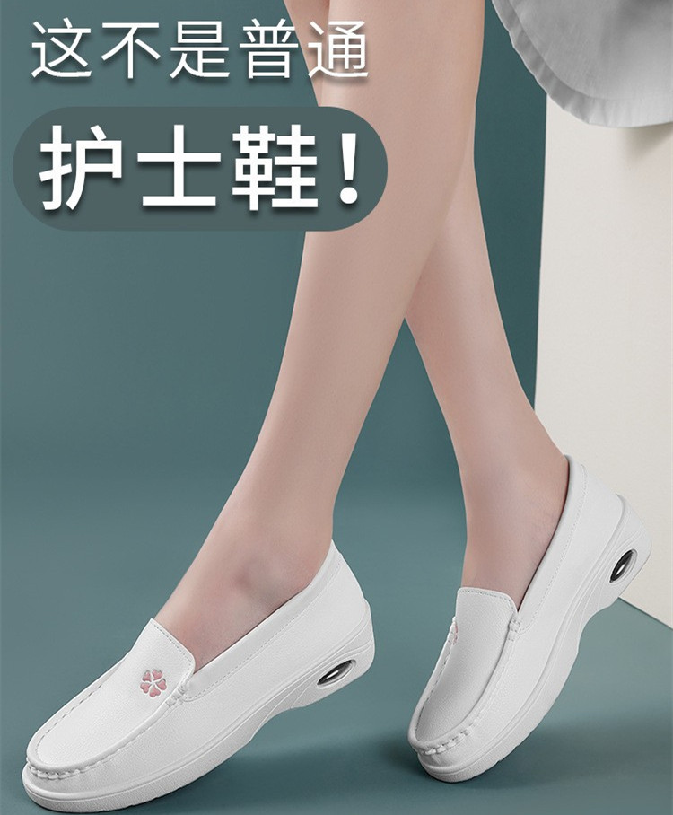 气垫护士鞋牛皮坡跟软底舒适透气工作鞋