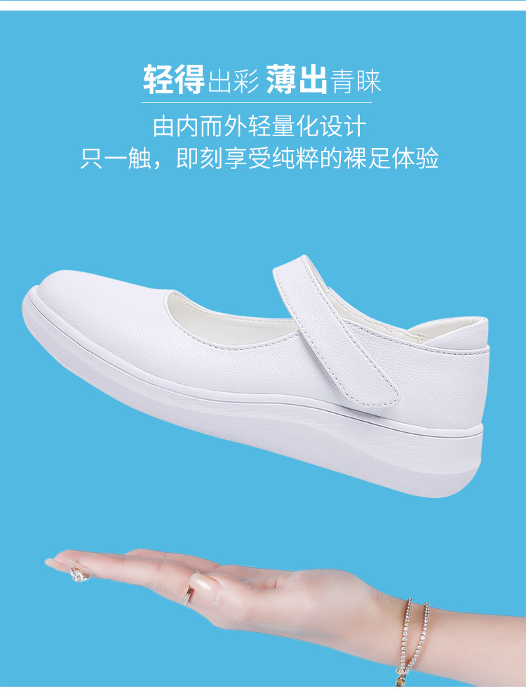 牛皮护士鞋女魔术贴夏季软底医院工作鞋透气防臭不累脚白色小白鞋