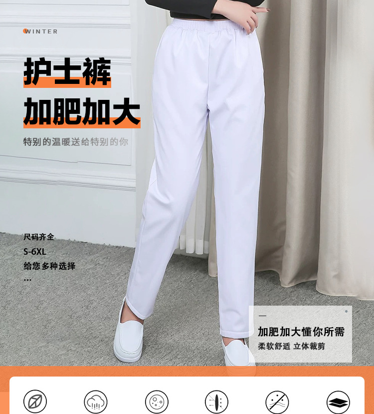 护士裤松紧腰粉白蓝色工作裤医生裤子