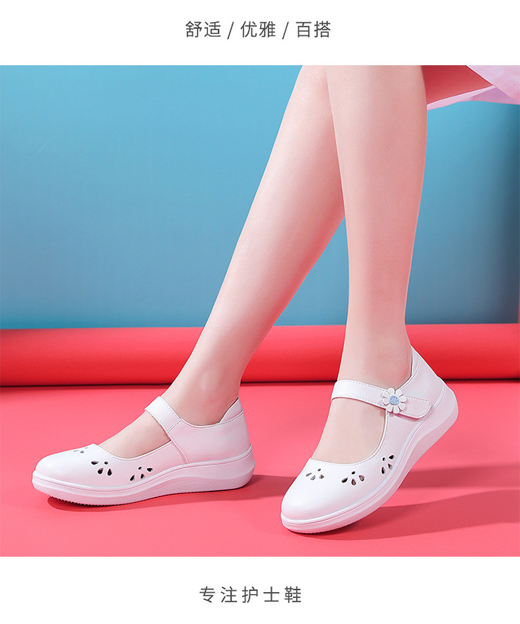 四季不累脚护士鞋女舒适软底防滑透气镂空真皮防臭平底工作医护鞋