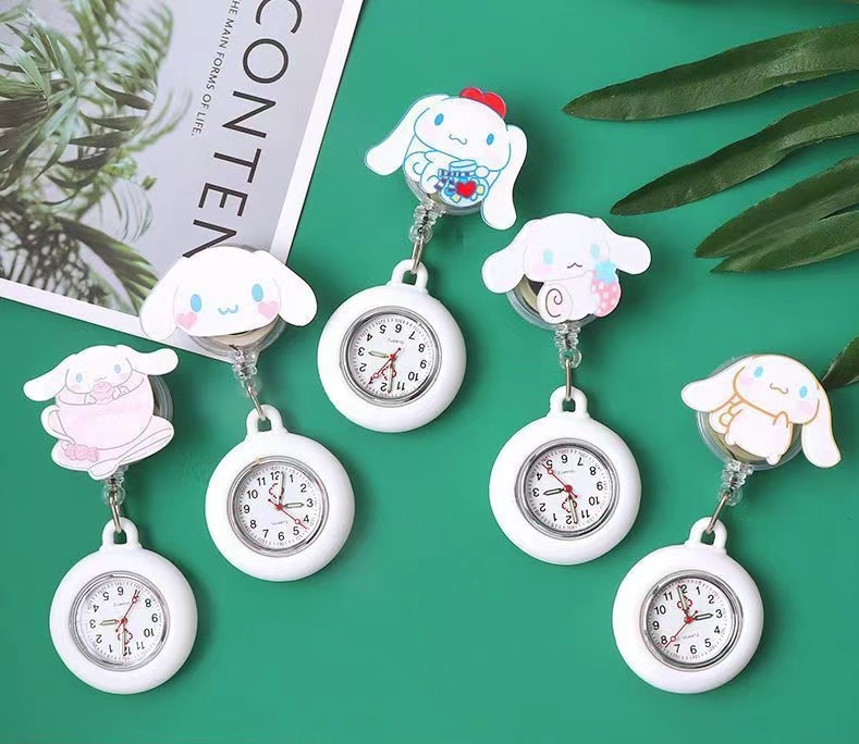 可伸缩护士表医用挂表护士胸表学生考试怀表可爱卡通玉桂狗夜光表