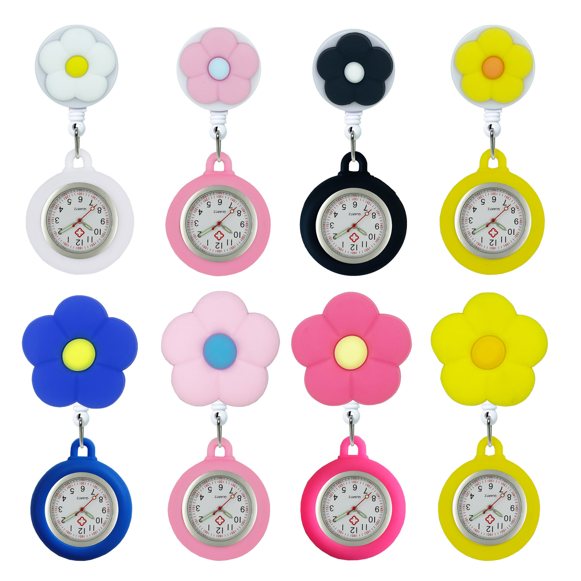 可爱花朵可拉伸易缩拉扣护士表医生胸表学生挂表硅胶怀表
