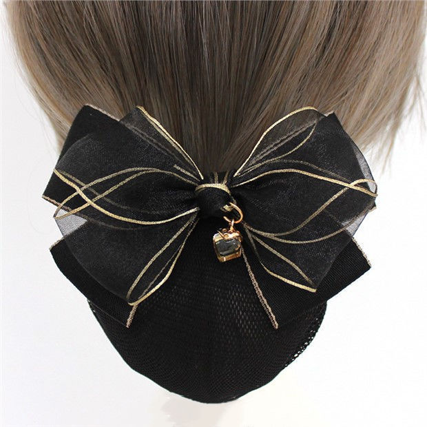 纱缎头花女高级感职业盘发网兜酒店银行护士金边蝴蝶结发饰发夹子