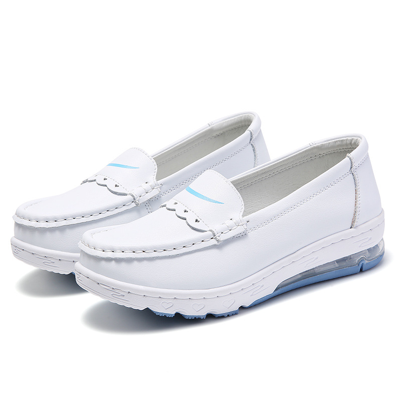 气垫护士鞋女软底透气不累脚真皮白色舒适平底防滑工作鞋