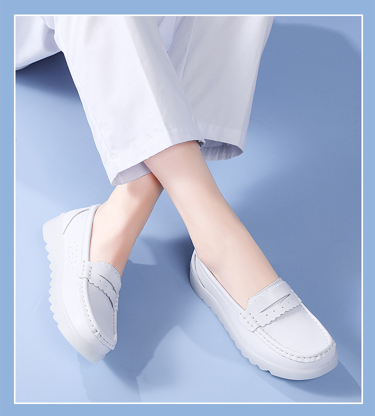 护士鞋女透气舒适不累脚医院工作鞋女软底皮鞋厚底春夏小白鞋增高