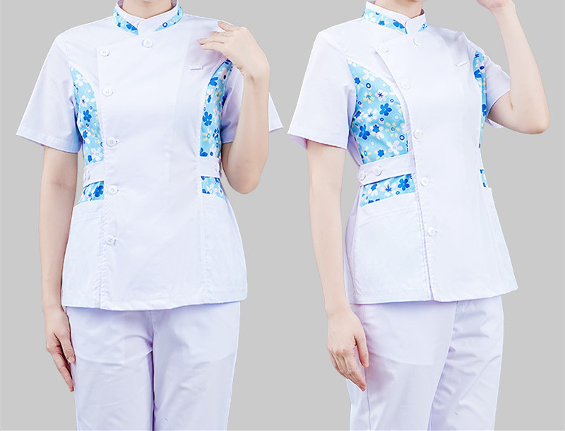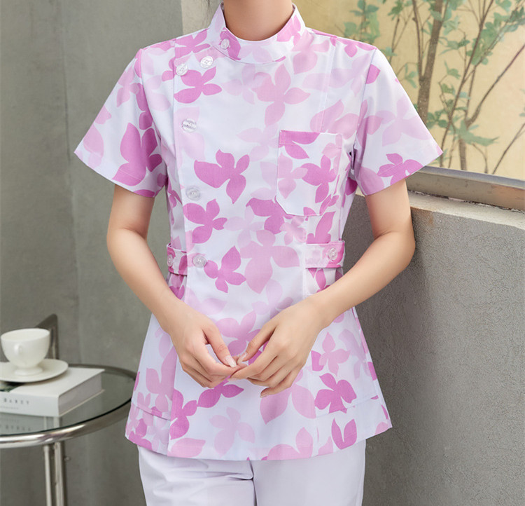 医护碎花偏襟立领护士服分体套装短袖款工作服美容院医院制服