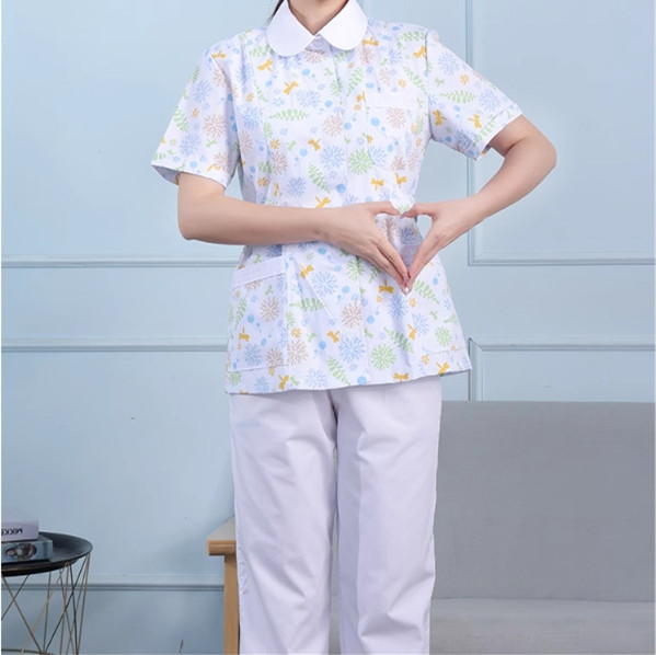 碎花护士服短袖偏襟立领分体套装月嫂母婴家政工作