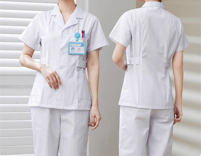 褶皱领护士服大褂女长短袖修身药店牙科工作服