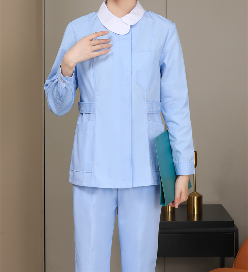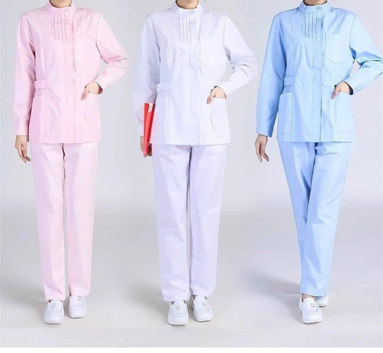 女长袖捏褶护士服分体套装蓝白粉色立领药店口腔牙科护理工作服