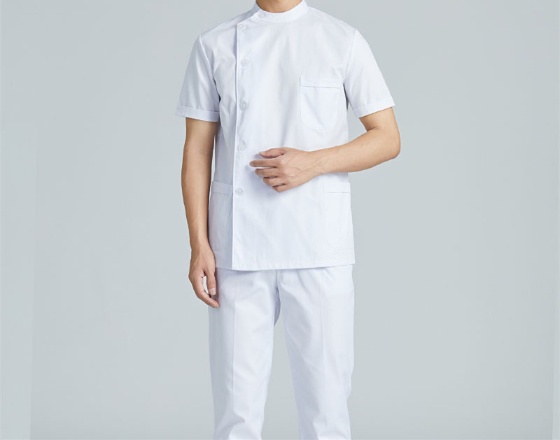 男分体套装护士医生长短袖白大褂短款医院立领蓝白小褂偏襟工作服套装