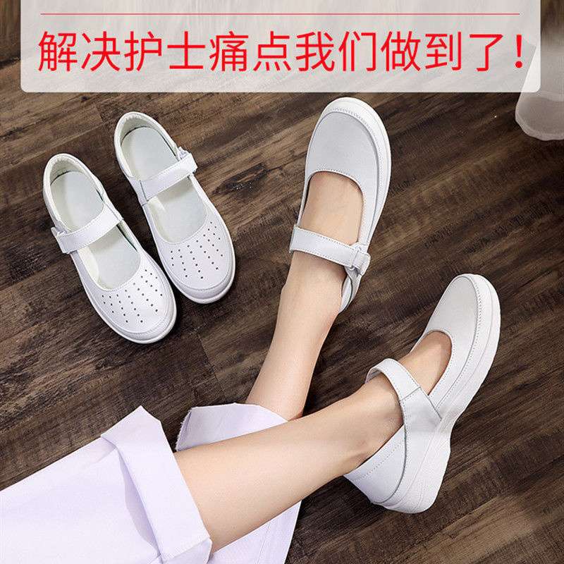 牛皮护士鞋软底透气百搭气垫白色厚底防滑工作鞋
