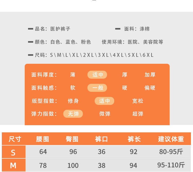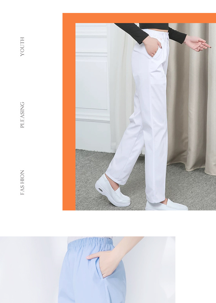 护士裤蓝白色弹力松紧腰夏季医生护士裤子美容院药店工作裤