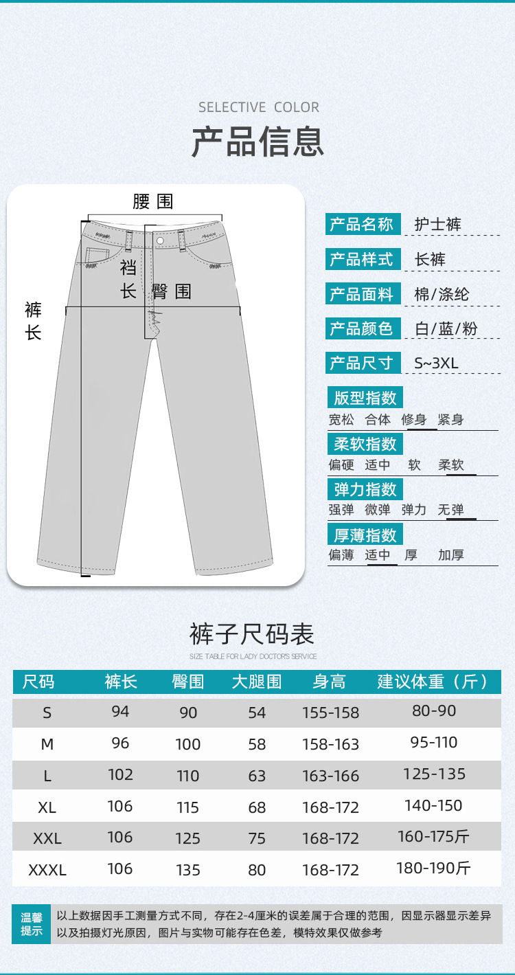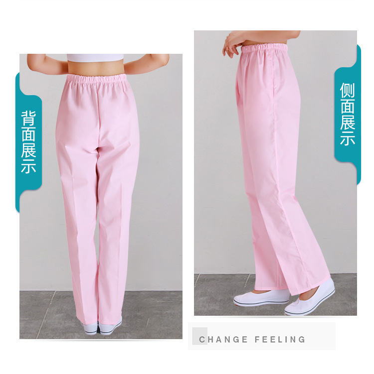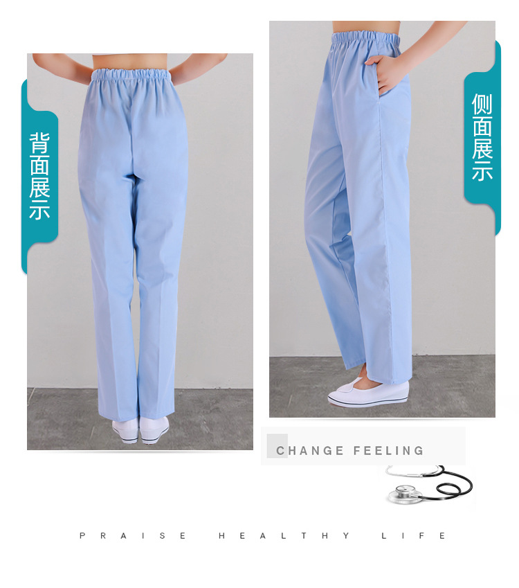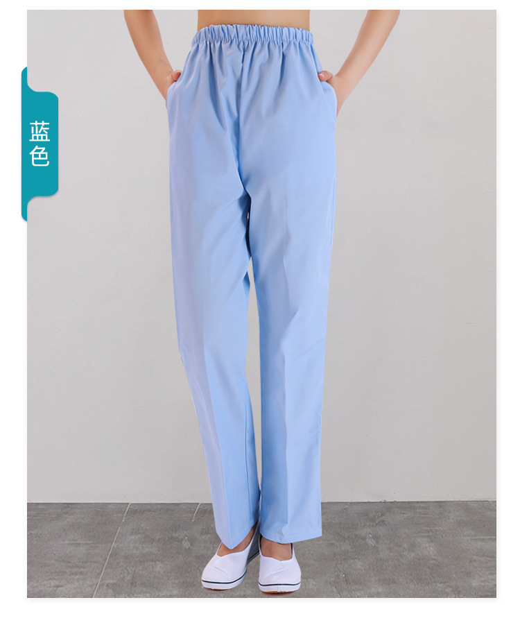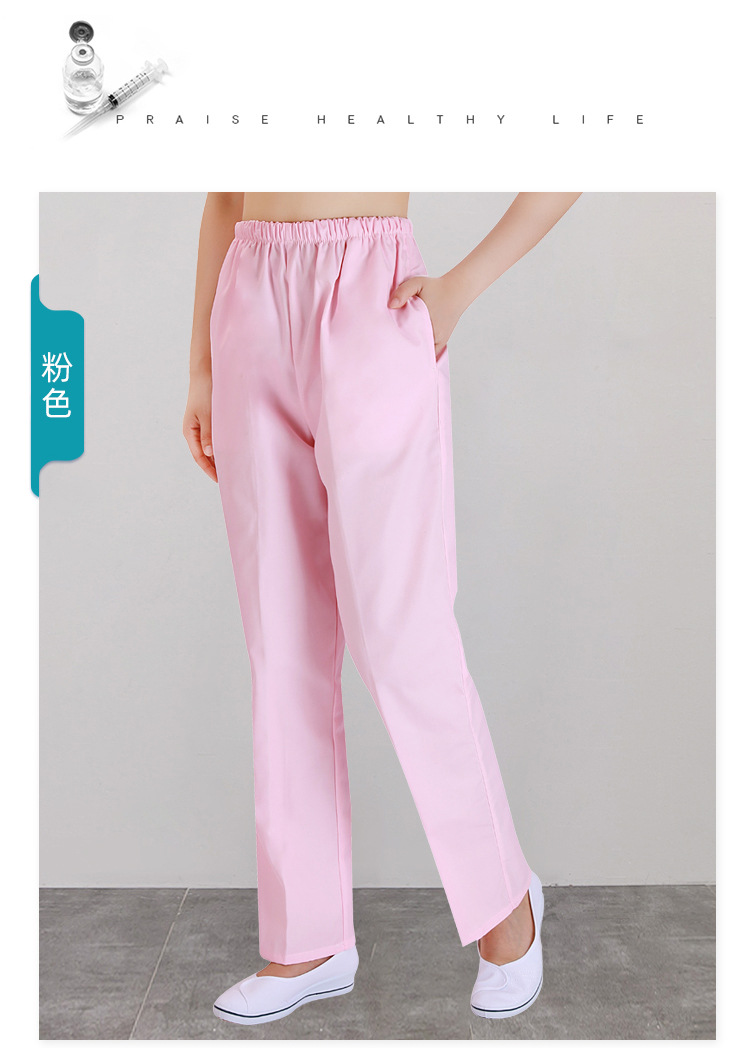 护士裤松紧腰粉白蓝色工作裤医生裤子
