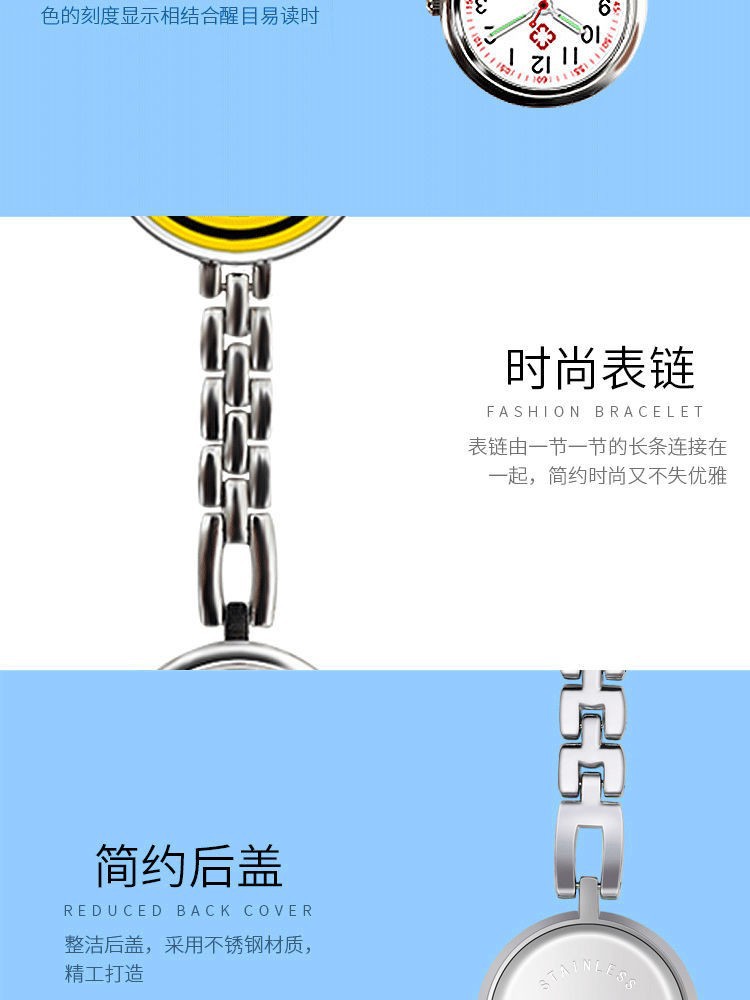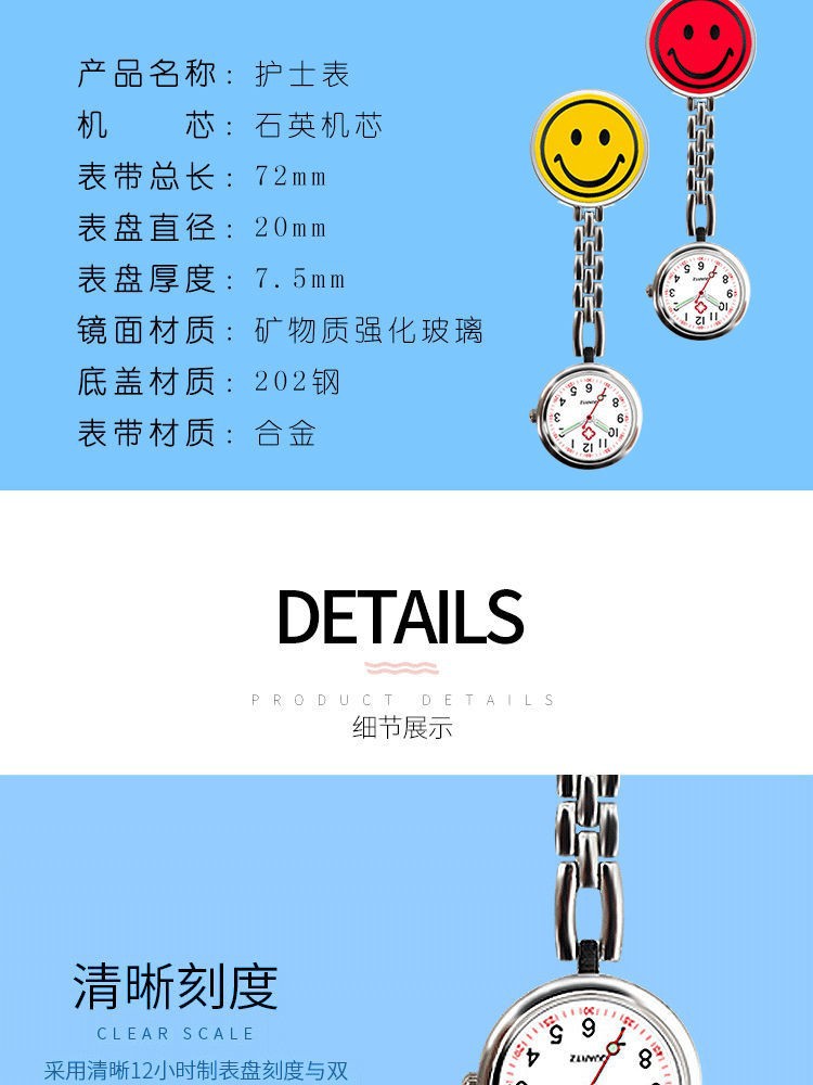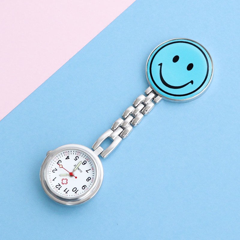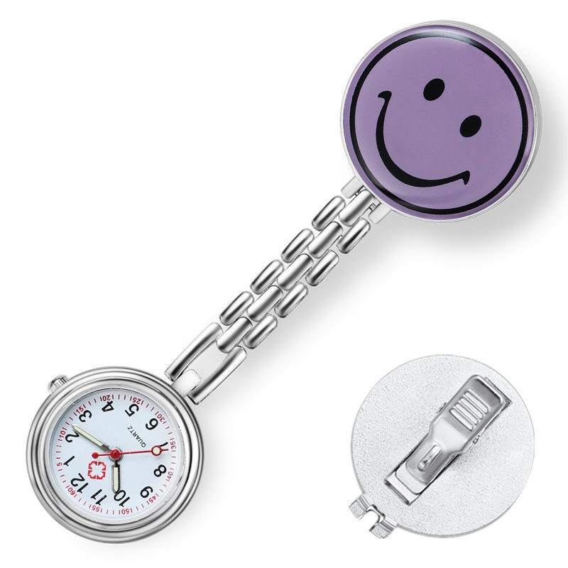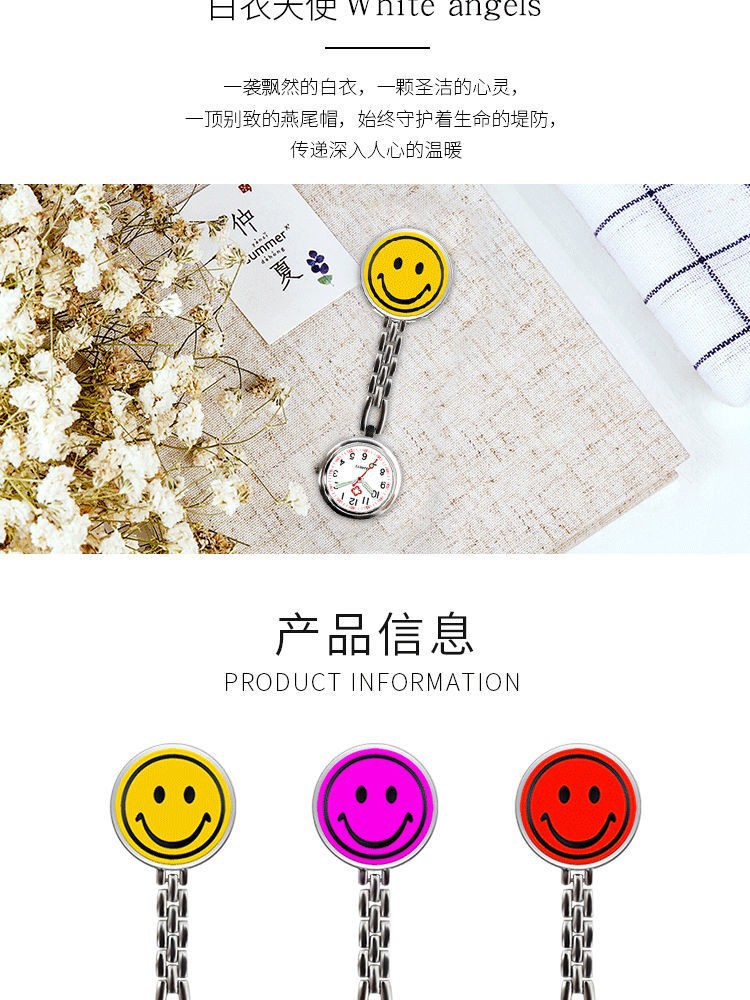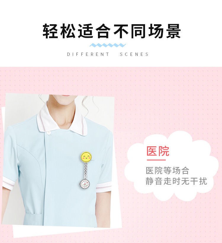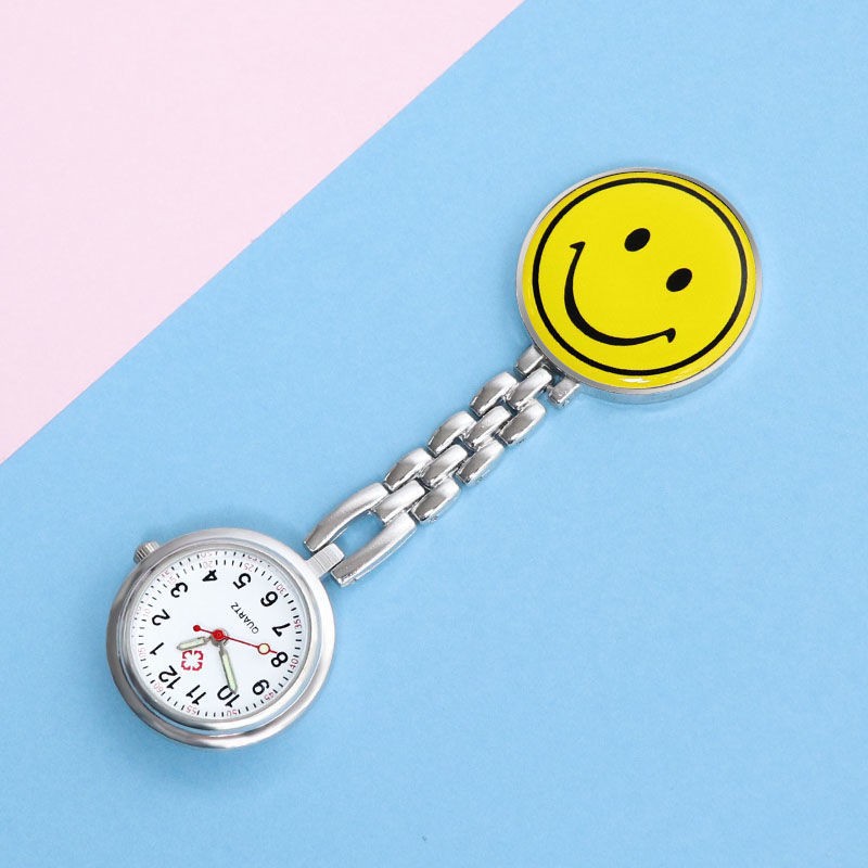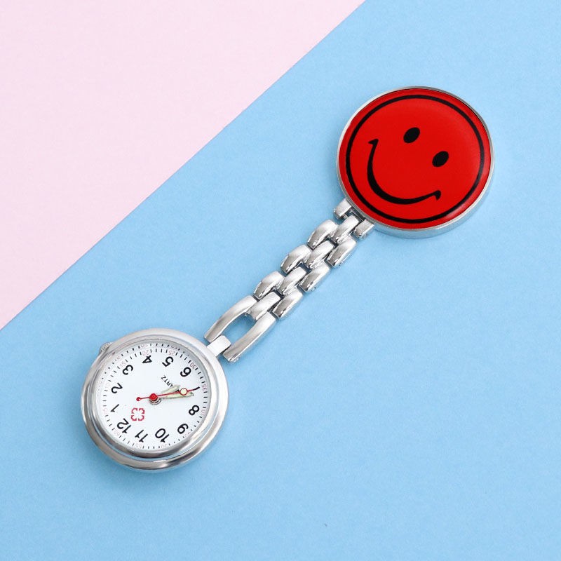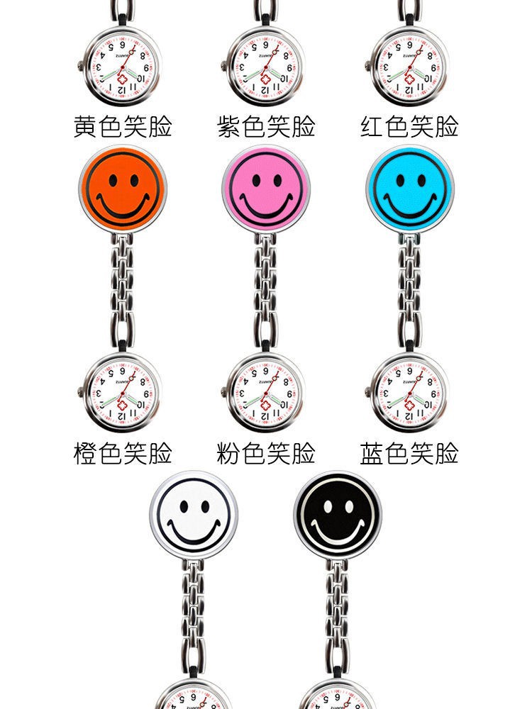 爆款圆形笑脸护士表时尚可爱少女创意夹子胸怀表简约学生考试挂表