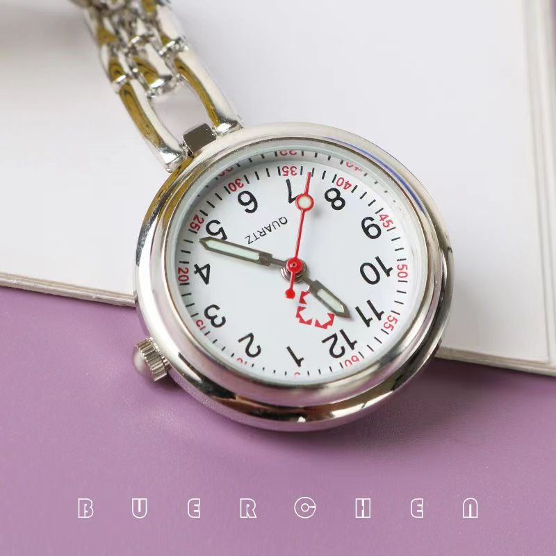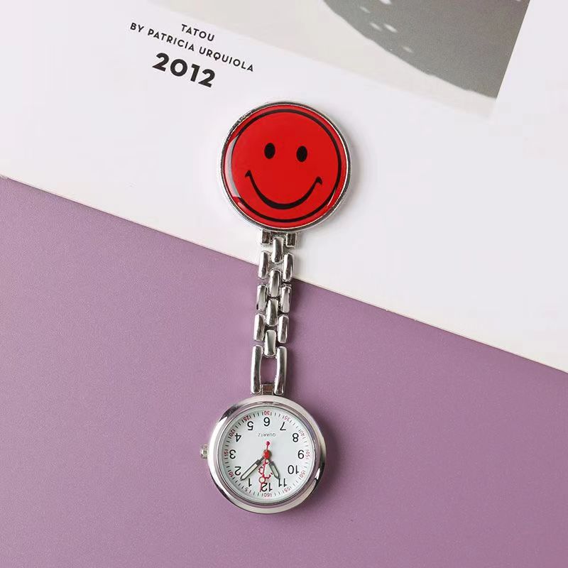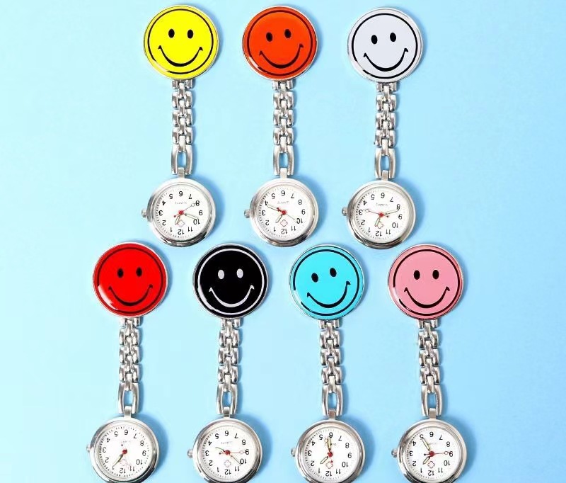 爆款圆形笑脸护士表时尚可爱少女创意夹子胸怀表简约挂表