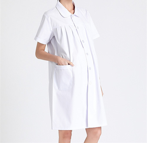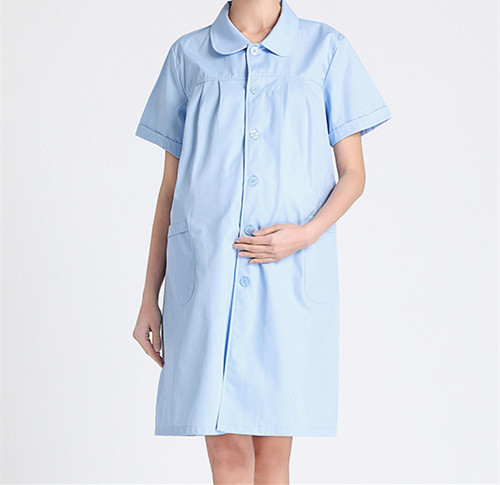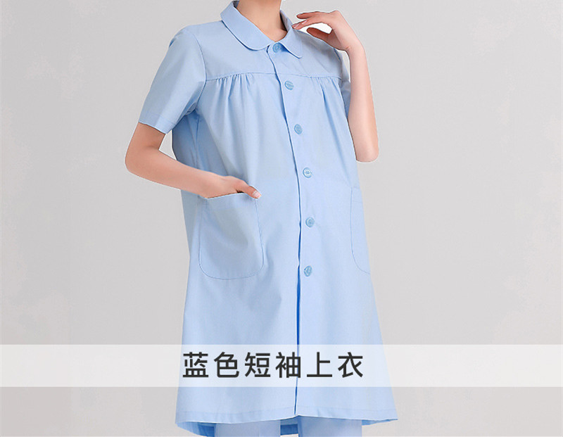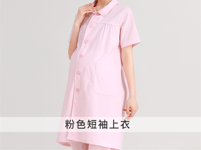 孕妇护士服大褂短袖大码蓝白粉色美容院孕期医护制服