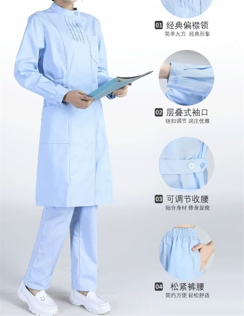 白大褂服护士服长袖女款尖立领分体套装实验室工作服偏捏折