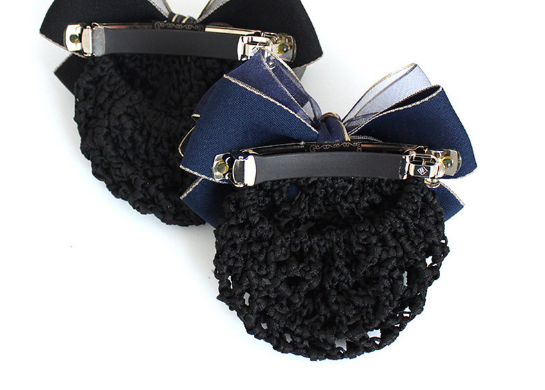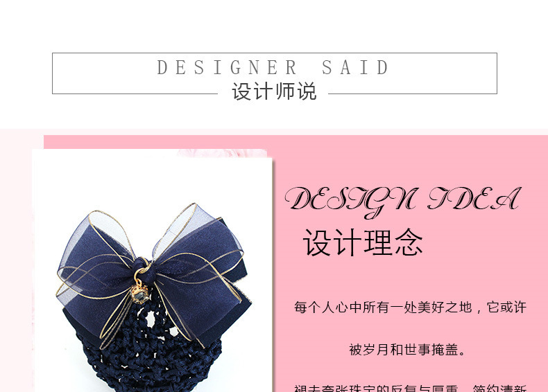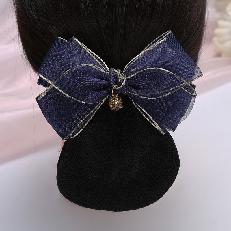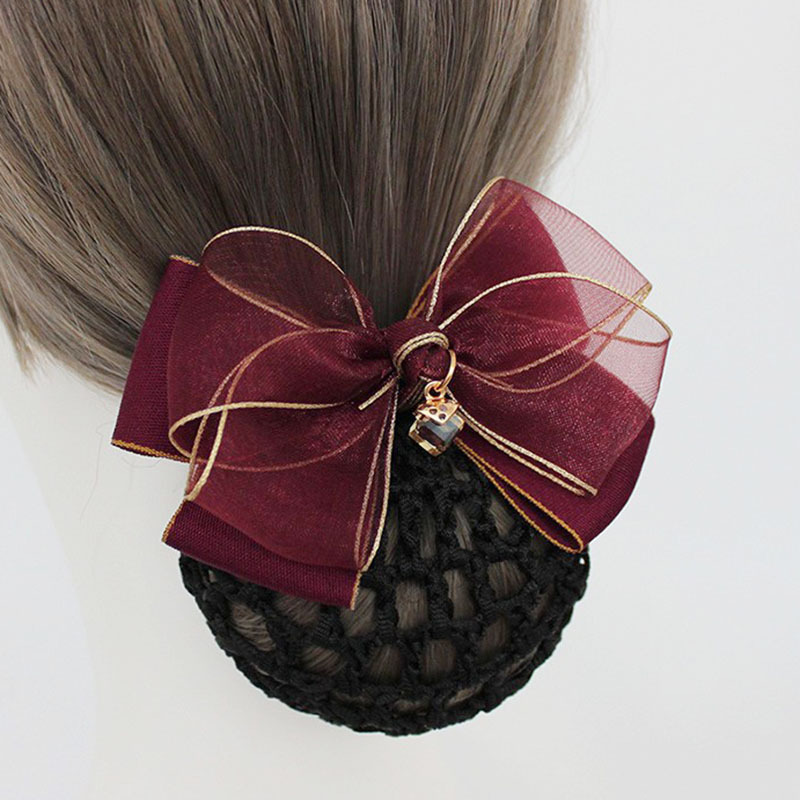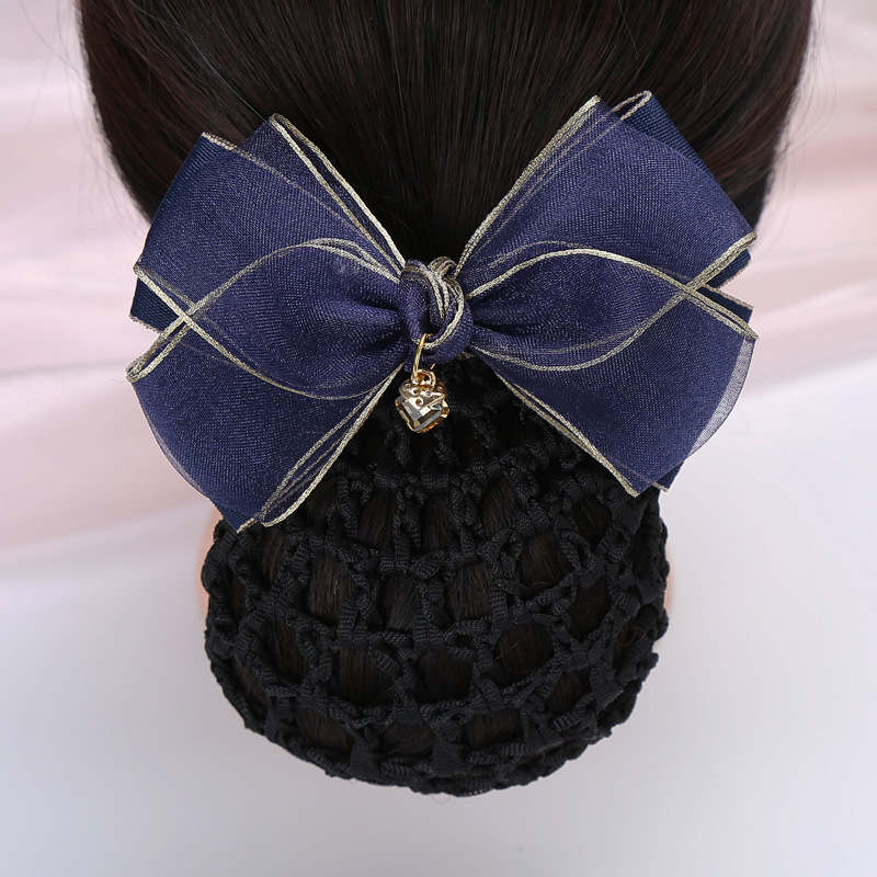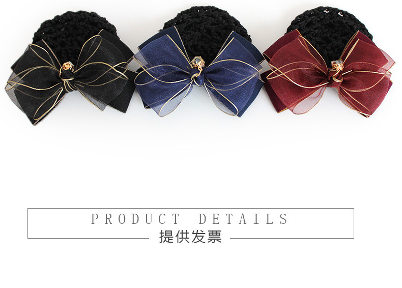 纱缎头花女高级感职业盘发网兜酒店银行护士金边蝴蝶结发饰发夹子