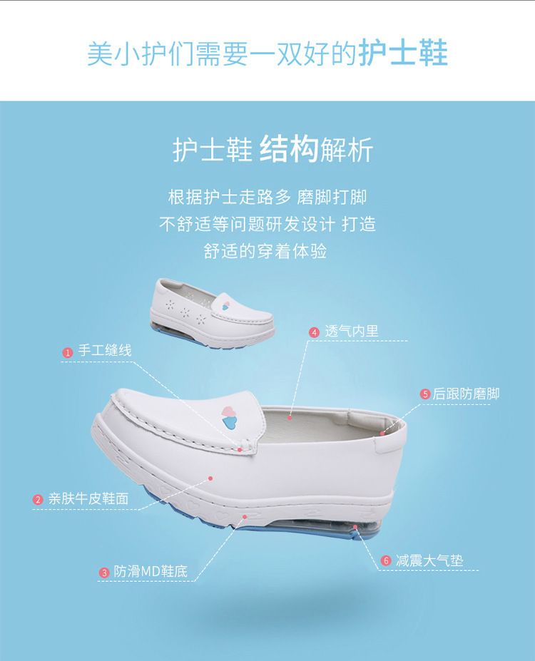 新款牛皮EVA气垫款医院白色护士鞋舒适软底潮流小白鞋