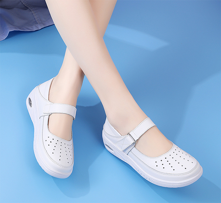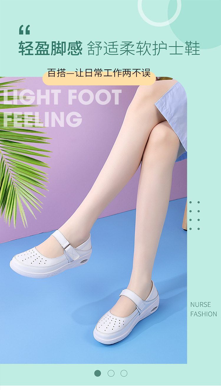护士鞋女夏季镂空鞋软底魔术贴款防滑舒适医护鞋