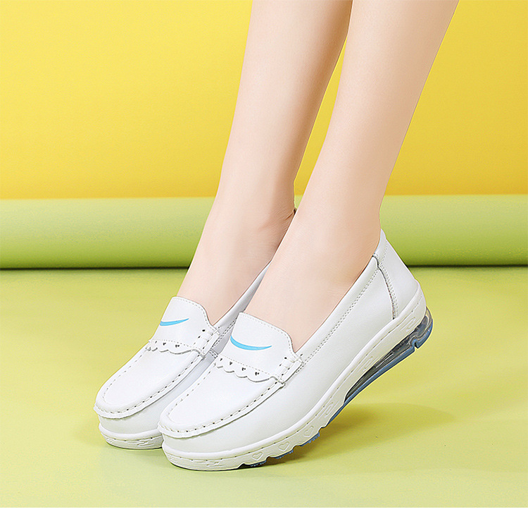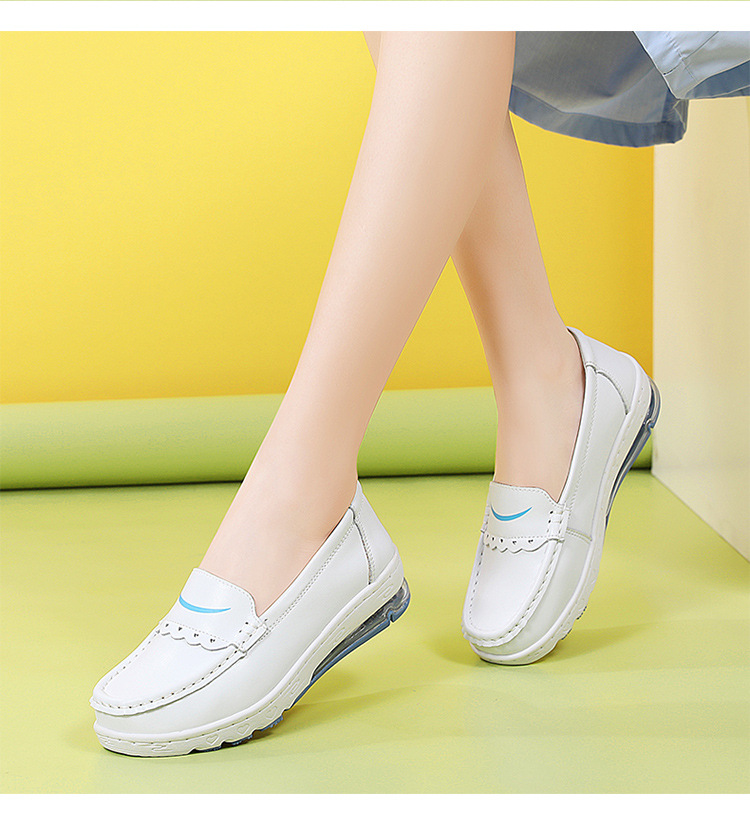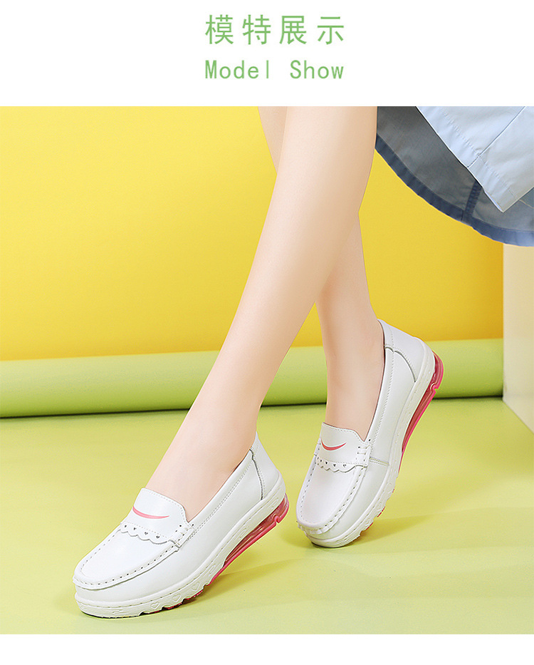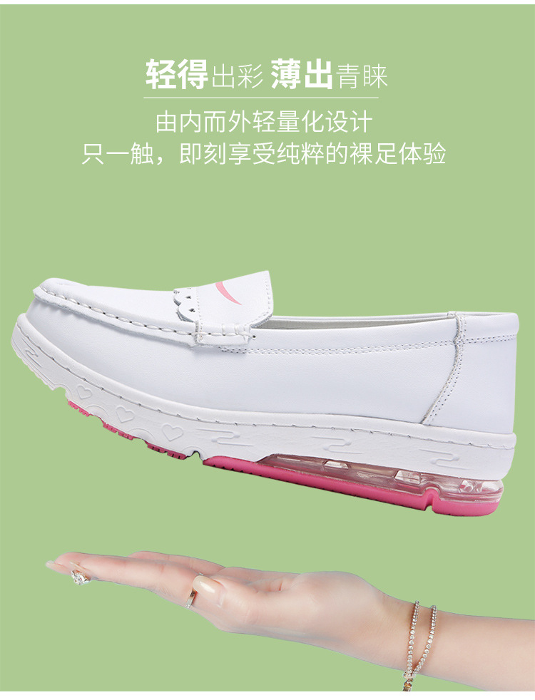 牛皮护士鞋软底透气百搭气垫白色厚底防滑工作鞋