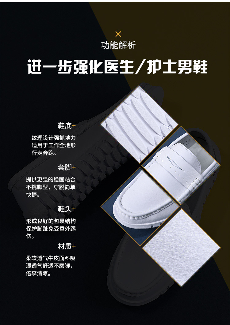 男护士鞋白色软底防滑医院工作鞋透气舒适男士休闲厚底鞋