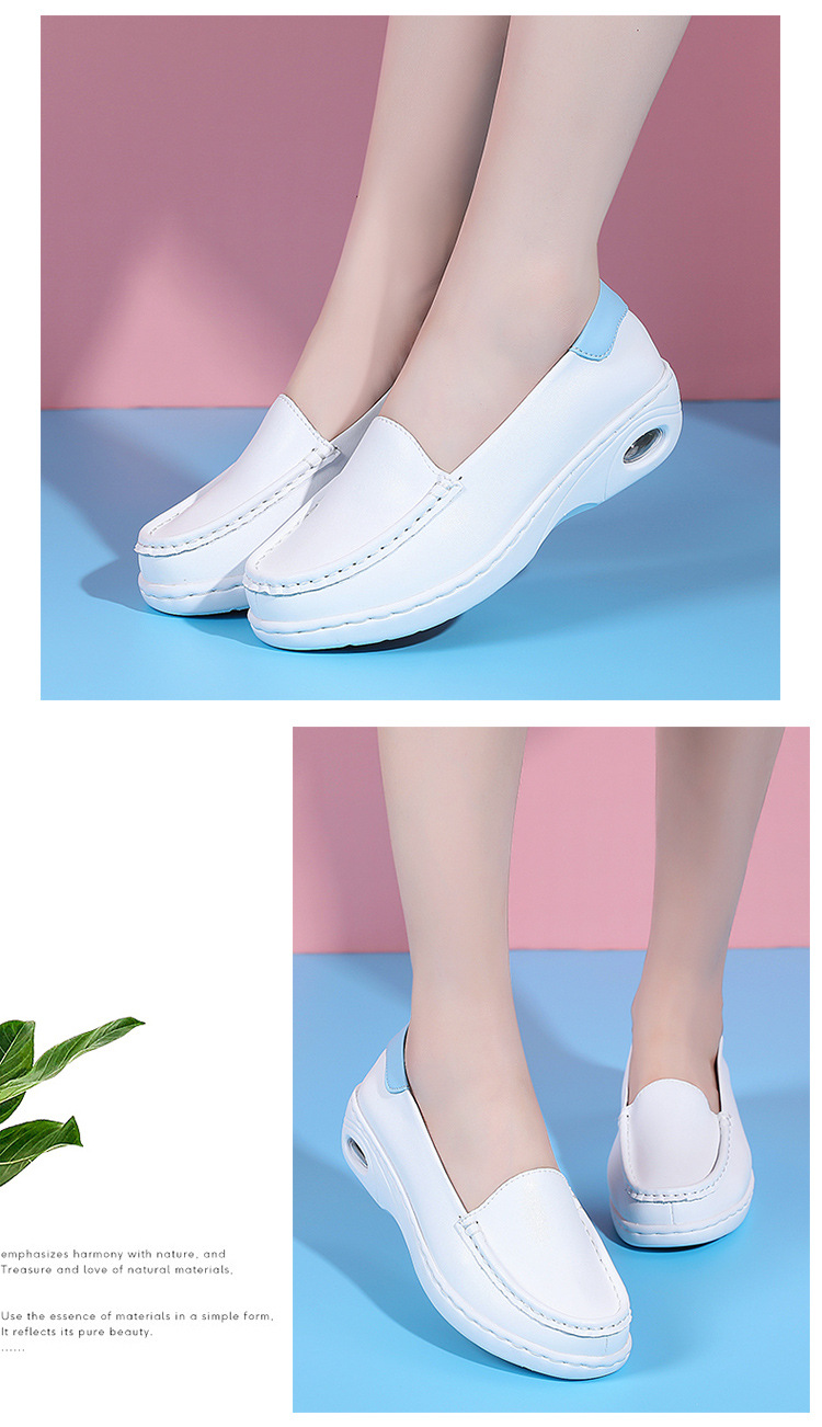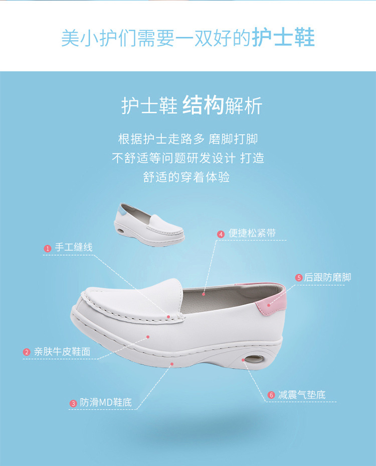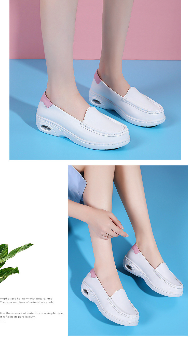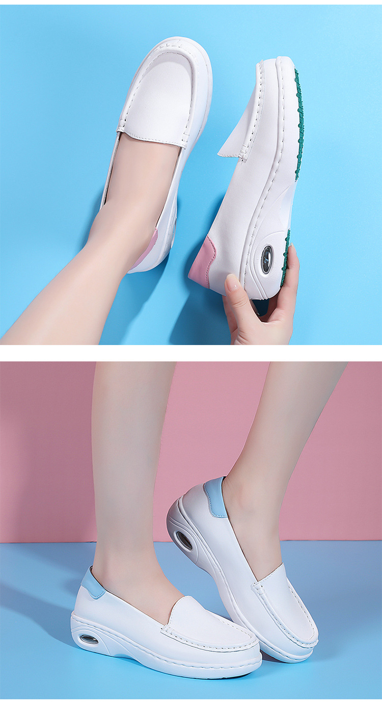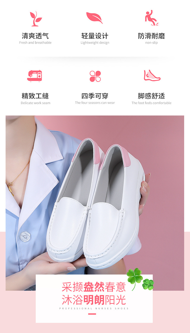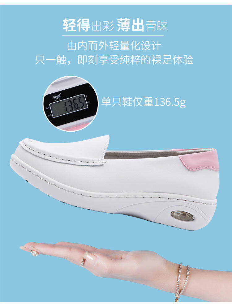 护士鞋秋冬真皮气垫软底透气平底防滑加绒工作鞋