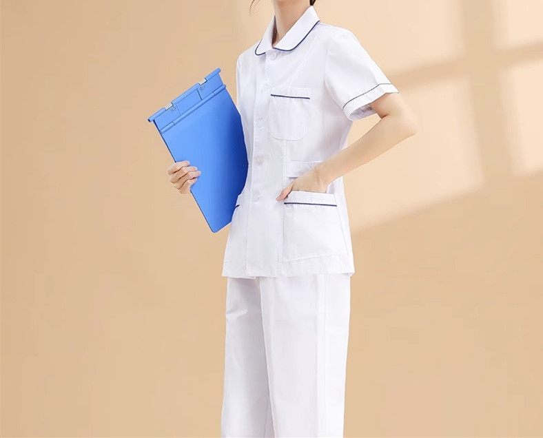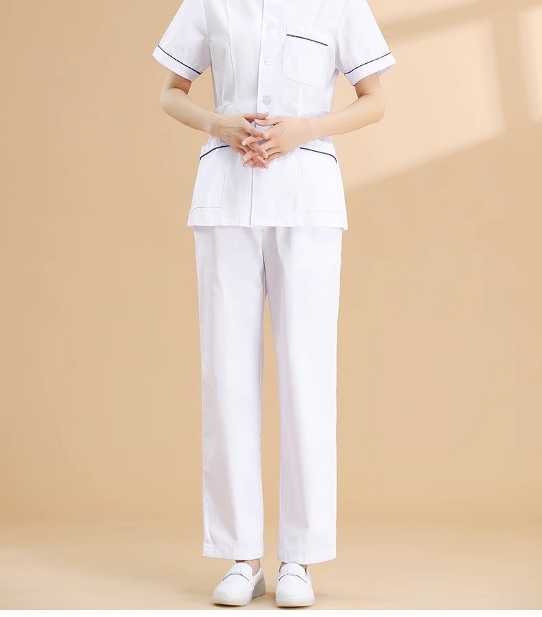 护士服短袖女加蓝边短袖分体套装牙科口腔医美药店短款