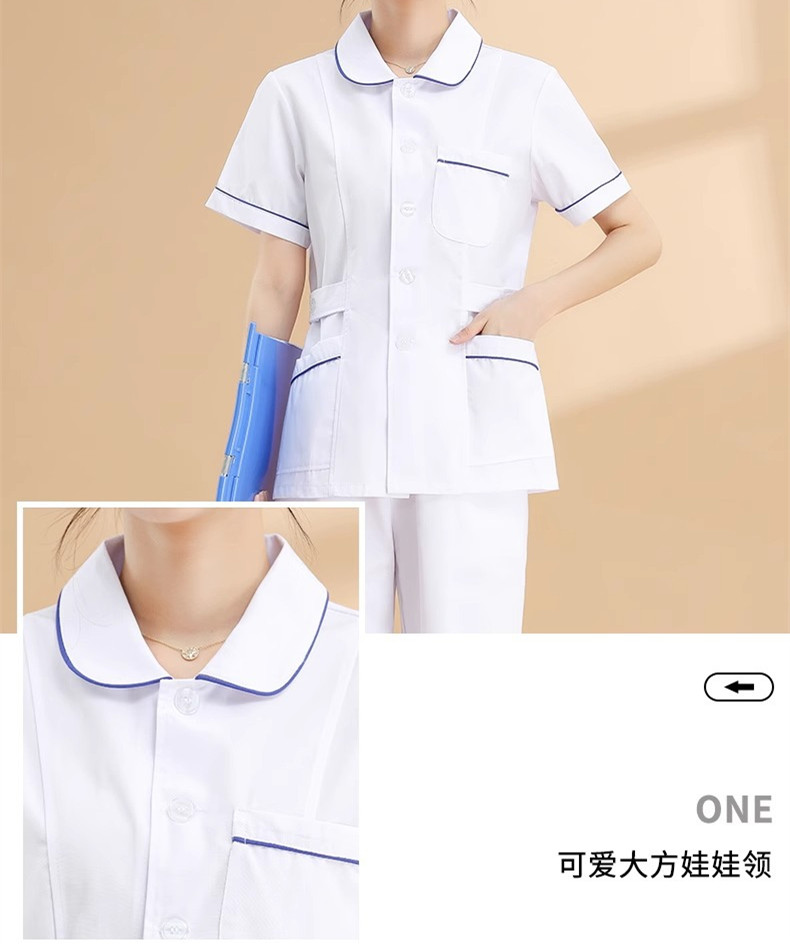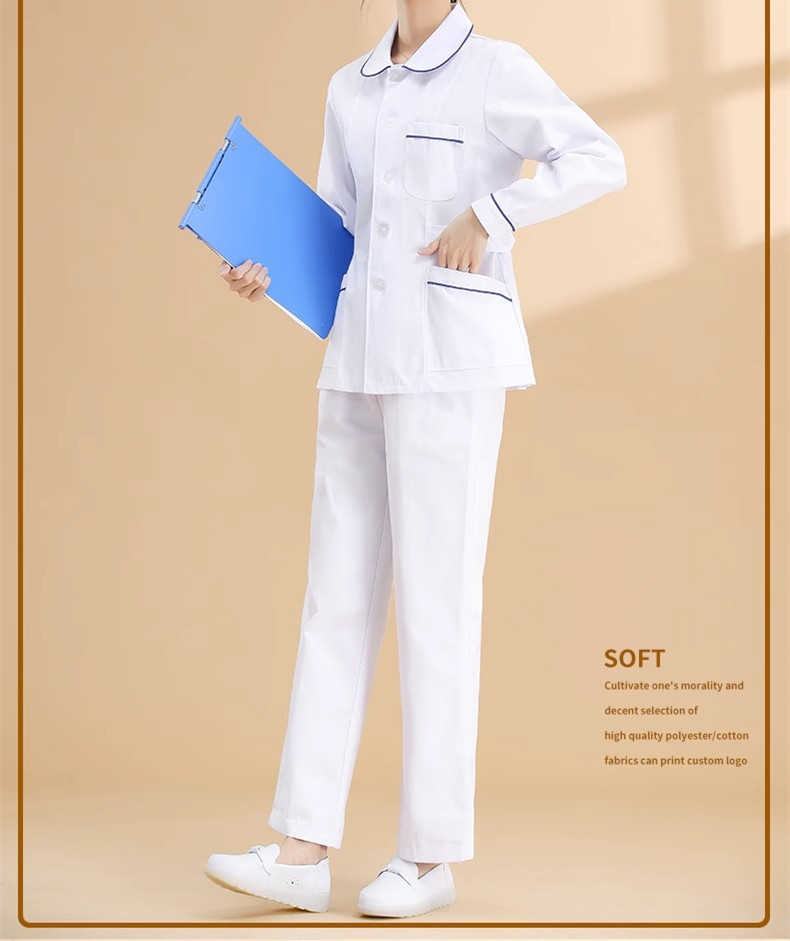 加蓝边护士服女套装长袖修身分体牙科工作服短款