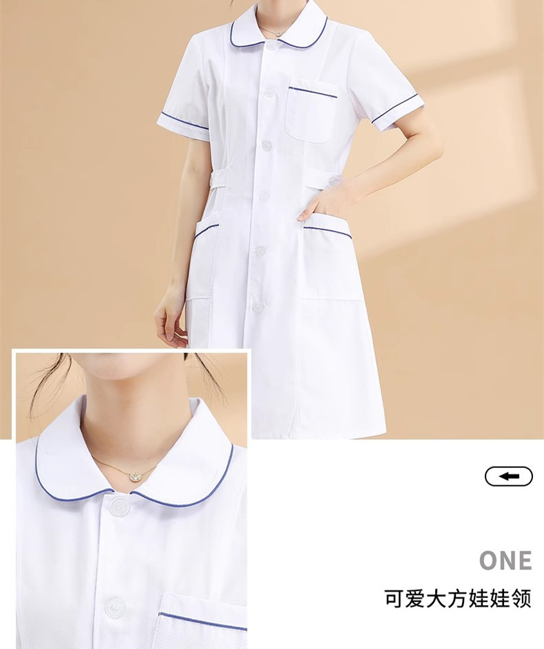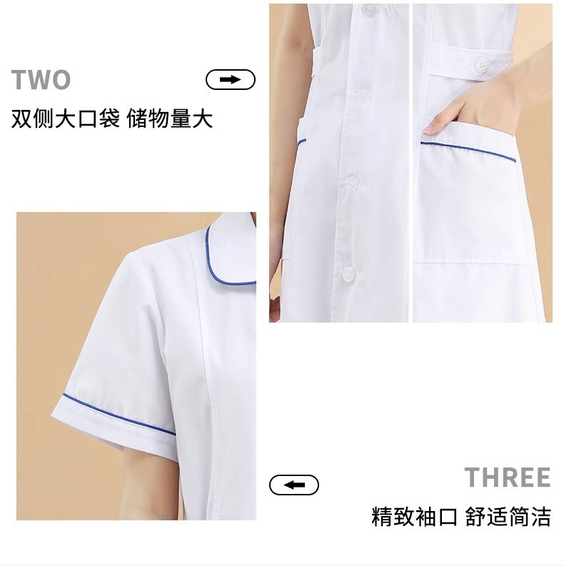 加蓝边护士服大褂短袖修身药店牙科工作服