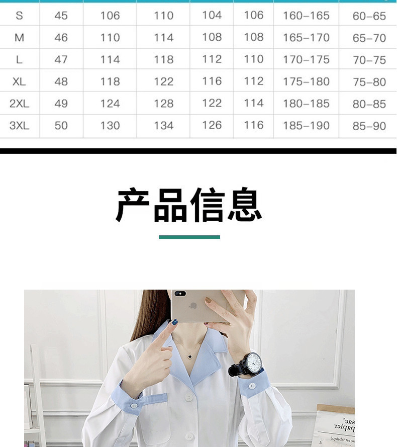 白大褂长袖男女同款护士医师大学生实验服医生服工作服