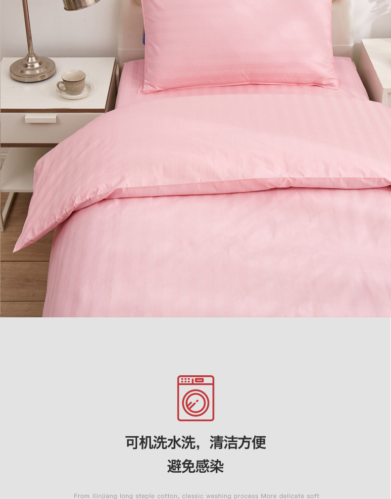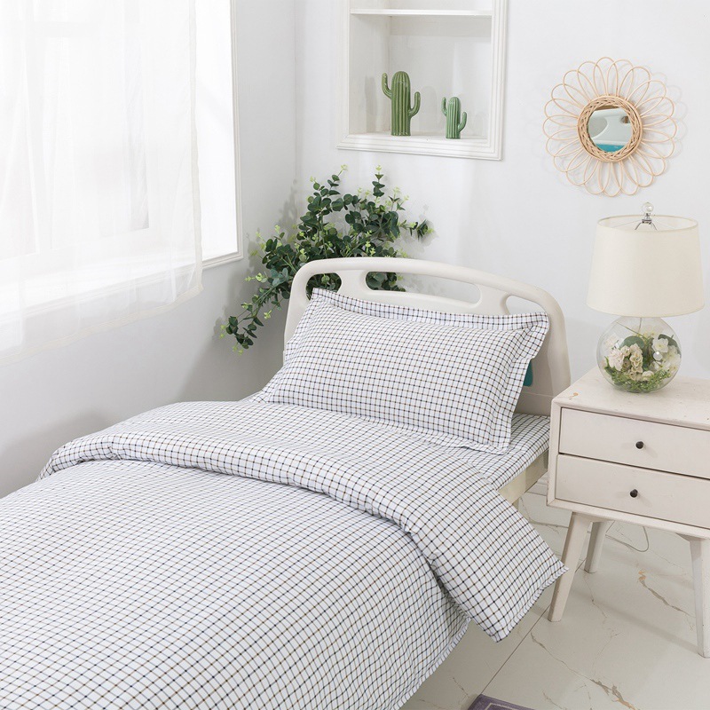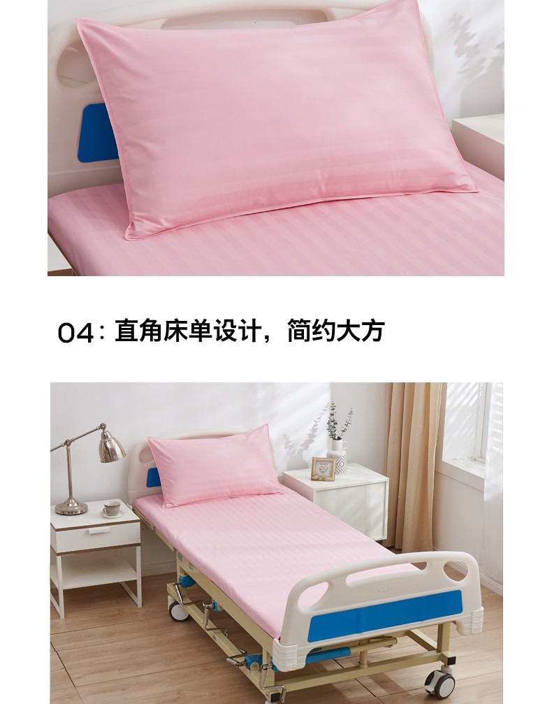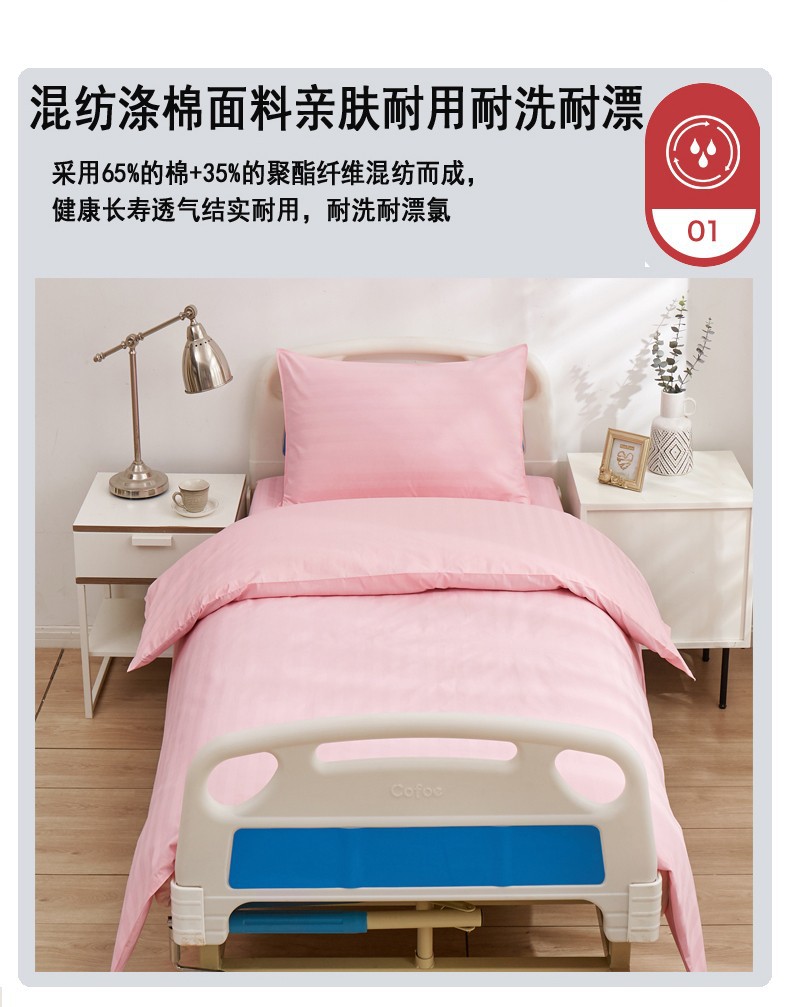 医院三件套床单被套枕套养老院专用涤棉医护病床白色缎条床上用品