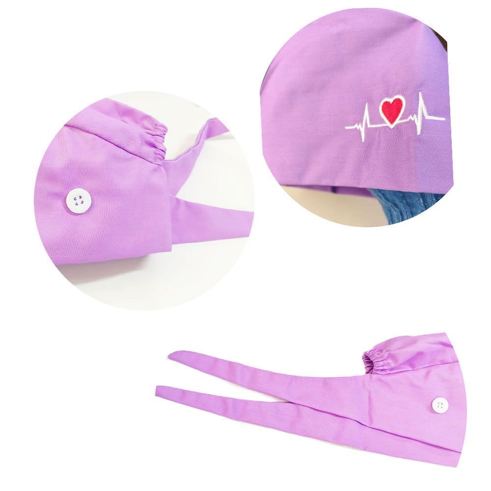 手术帽心电图爱心刺绣纽扣护士帽 男女通用