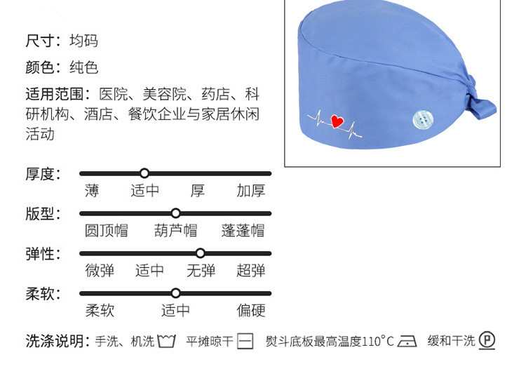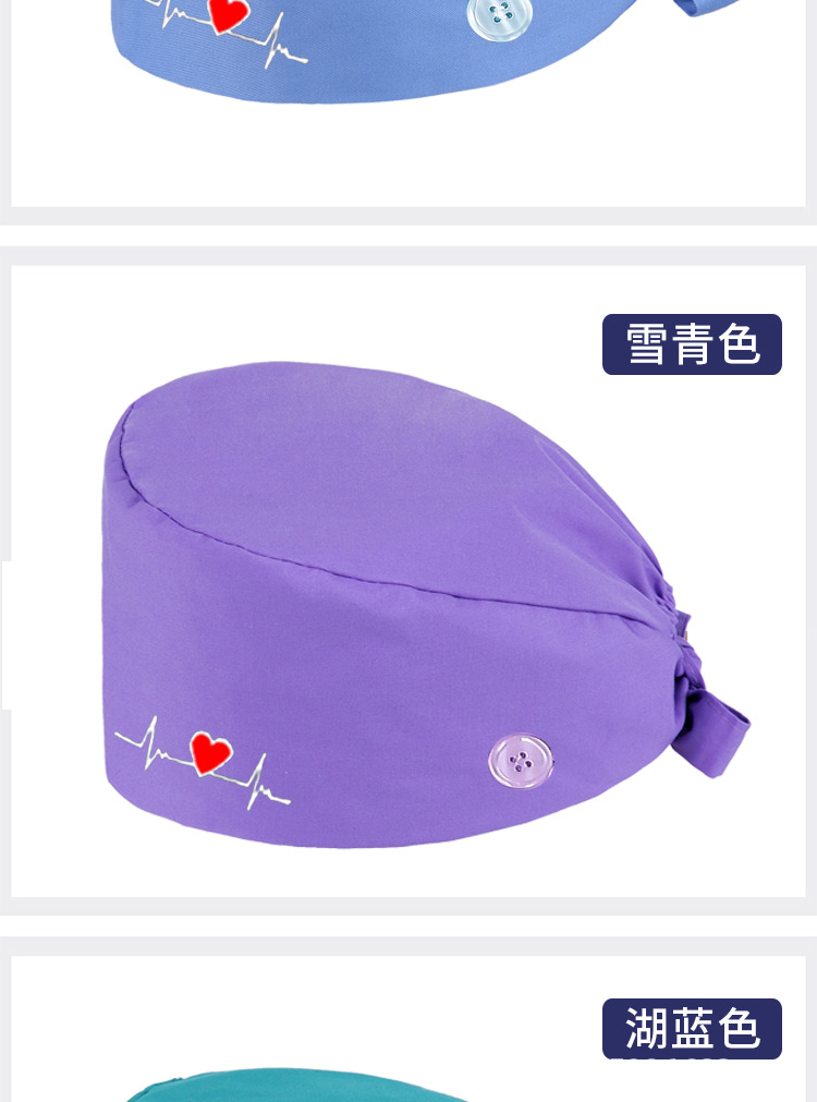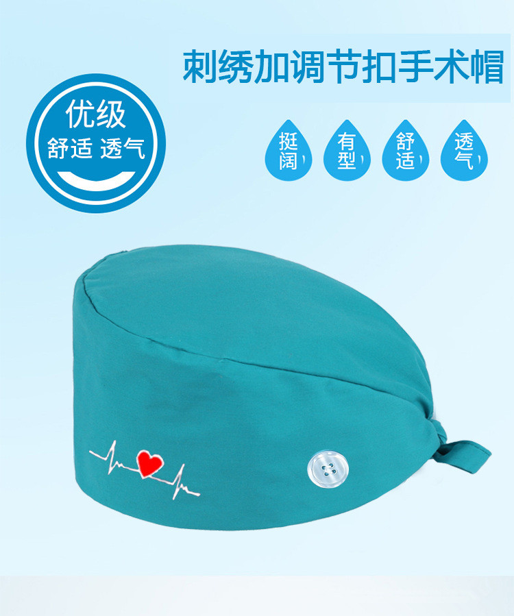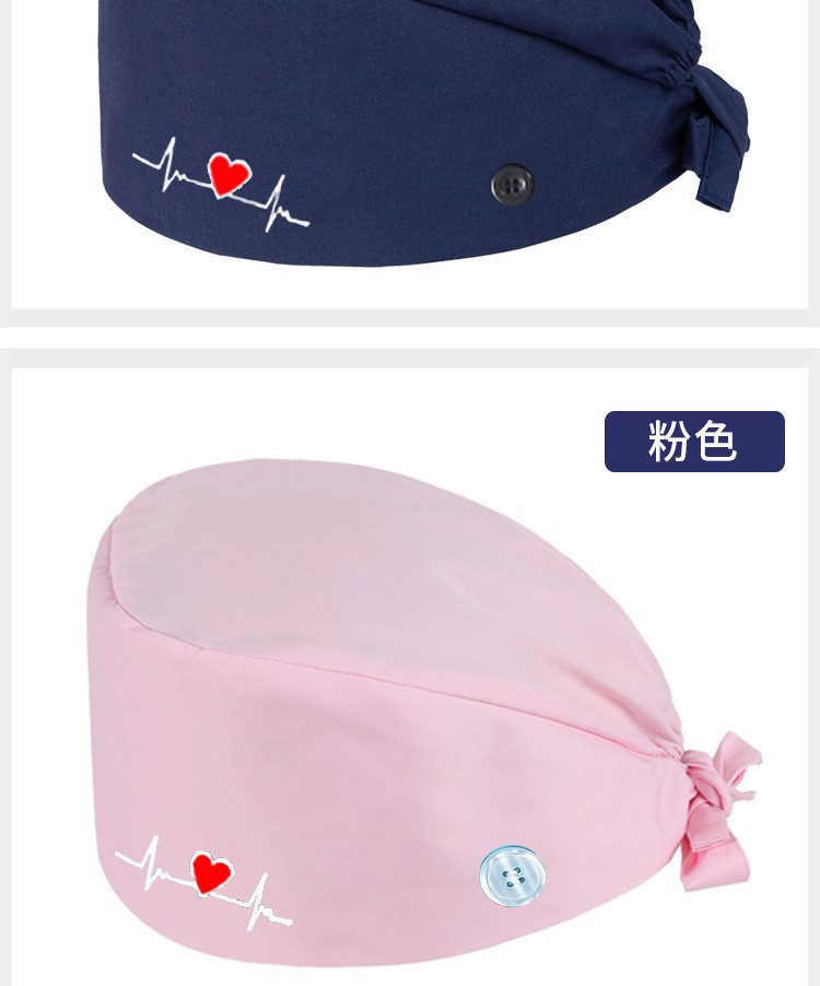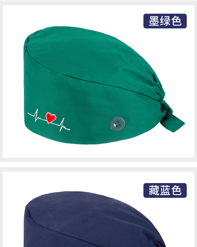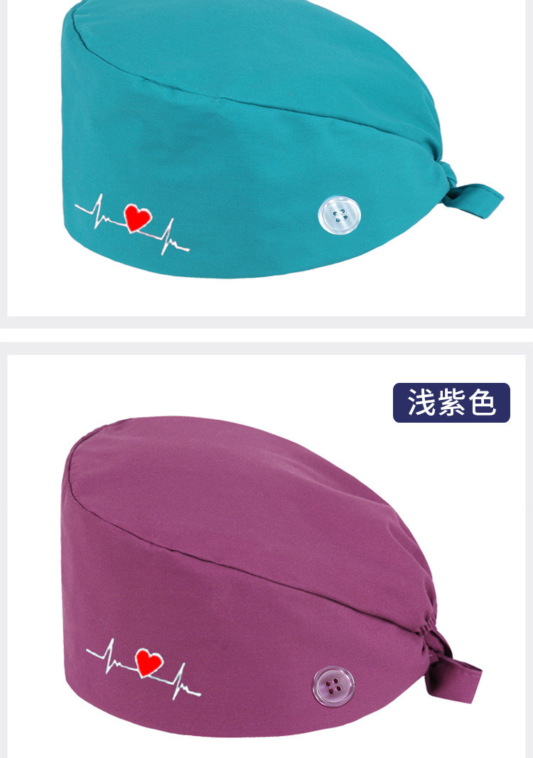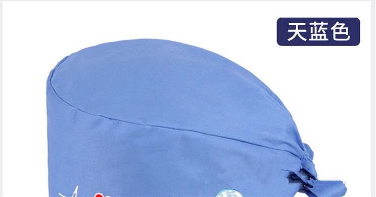 手术室帽子纯色刺绣加扣子纯棉护士帽工作帽医生护士美容院包头帽
