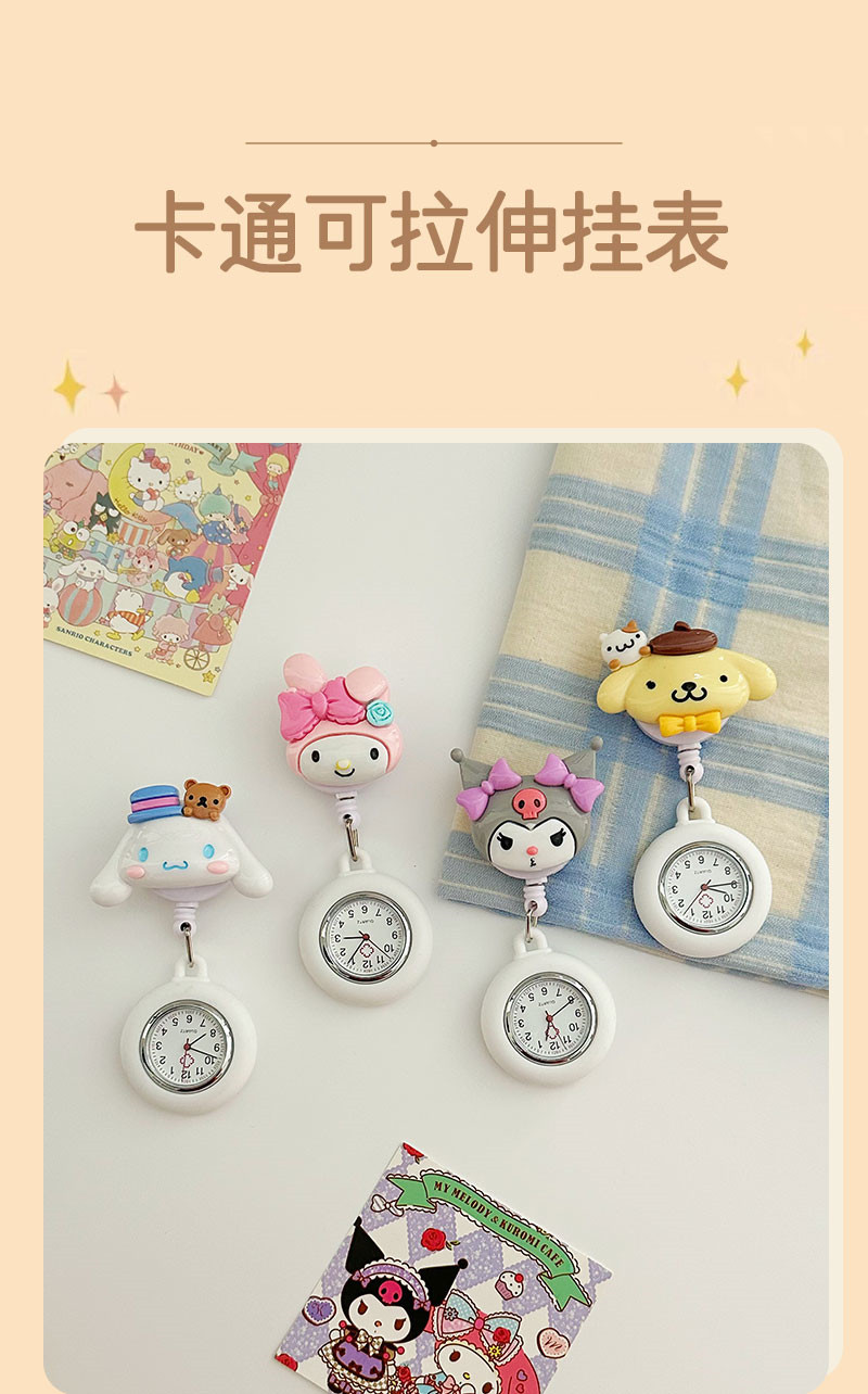可伸缩护士表医用挂表护士胸表学生考试怀表可爱卡通玉桂狗夜光表