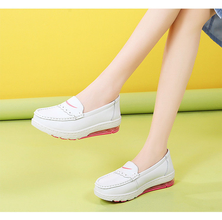 牛皮护士鞋软底透气百搭气垫白色厚底防滑工作鞋