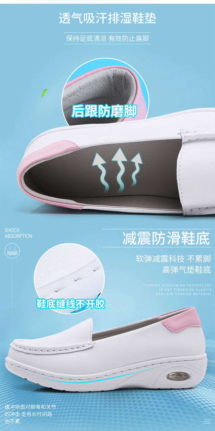 护士鞋秋冬真皮气垫软底透气平底防滑加绒工作鞋
