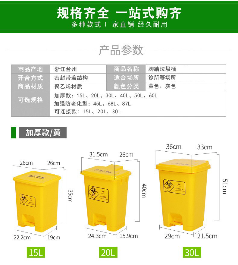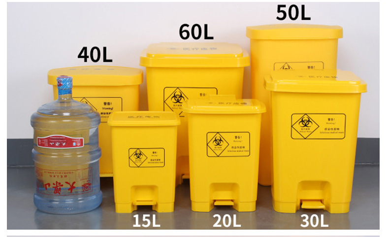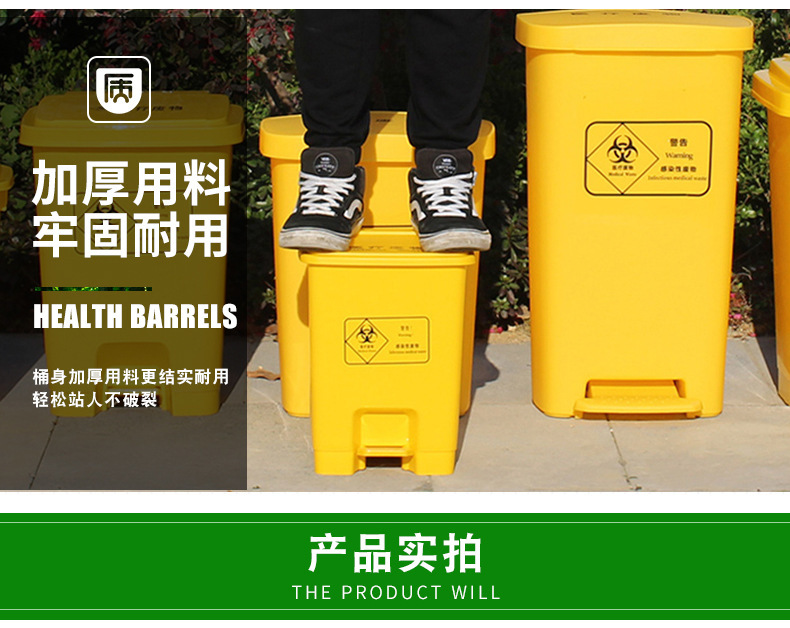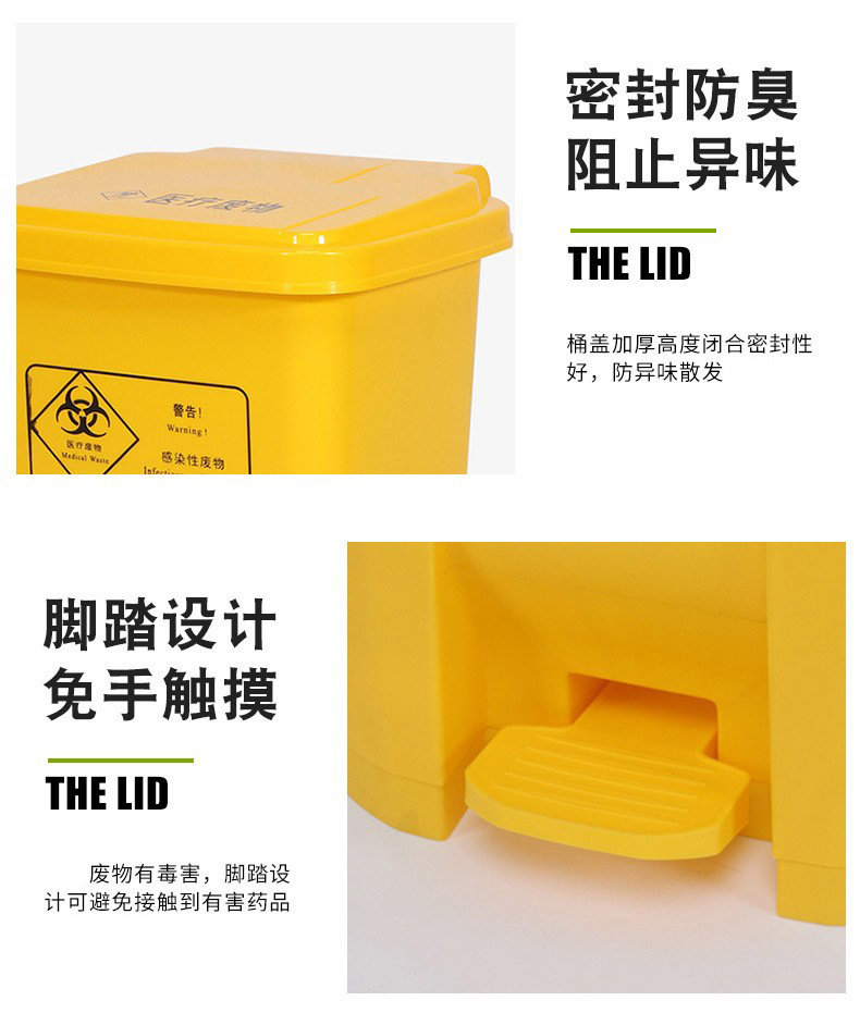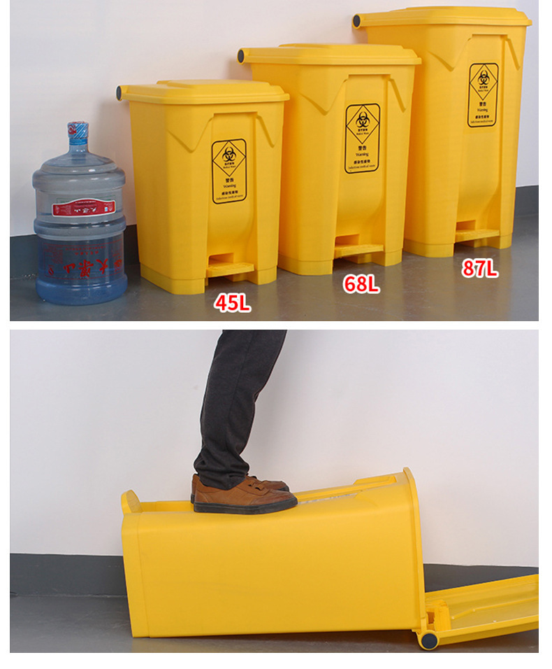 黄色医疗脚踏式垃圾桶加厚医院牙科诊所医用废物桶带盖塑料垃圾桶